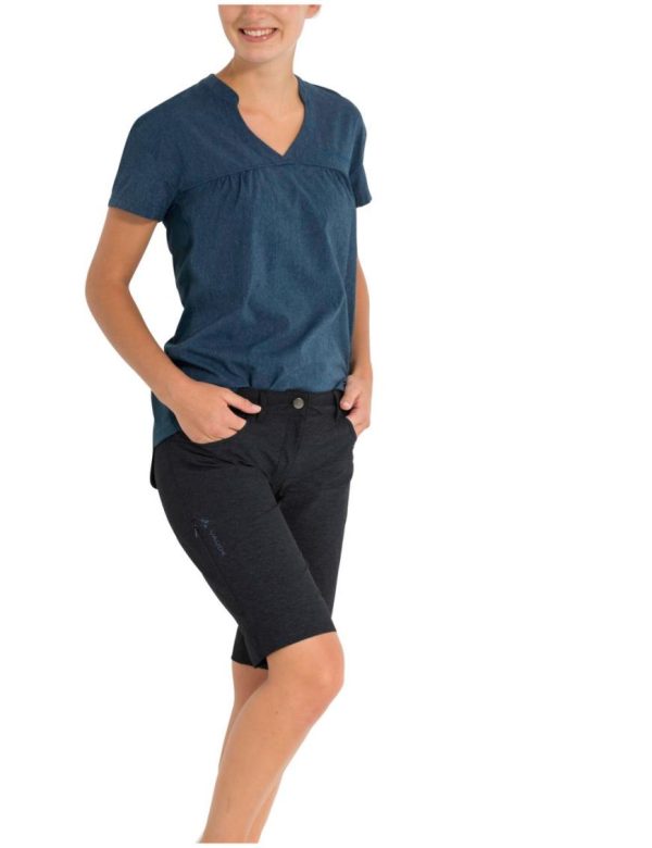 Das Women’s Turifo Shirt ist die ideale Wahl für Frauen, die ein sportliches, aber trotzdem bequemes Shirt für die nächste Ausfahrt auf dem Rad suchen. Das schlicht designte Hybrid Shirt eignet sich für Radreisen genauso wie für den Alltag. Das Shirt wird aus einem herrlich angenehmen Material hergestellt, das weich auf der Haut liegt, schnell trocknet und Feuchtigkeit zügig nach außen leitet. Das Women’s Turifo Shirt ist an der Rückseite etwas länger geschnitten, damit es auch bei einer gebeugten Sitzposition bis über das Gesäß reicht. Das VAUDE Green Shape-Label steht für ein umweltfreundliches, funktionelles Produkt aus nachhaltigen Materialien. Entwickelt für Fahrradreise – moderat Weitere Einsatzbereiche Fahrradfahren im Alltag,Wandern,Unterwegs im Alltag,Reisen
