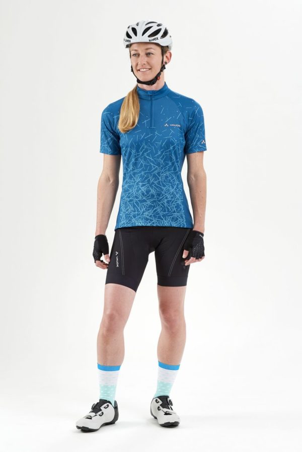 Das Women’s Dotchic Tricot III ist ein optisches Statement auf dem Bike. Mit diesem lässigen Trikot wirst Du nicht nur auf dem Rad eine gute Figur machen. Das sportiv geschnittene Damentrikot fällt locker über die Hüfte und ist mit Stehkragen und einem kurzen Reißverschluss ausgestattet. Drei obligatorische Rückentaschen für Wertgegenstände oder Deine Windjacke sorgen dafür, dass Du auch während der Fahrt alles griffbereit hast. Das hochwertige Funktionsmaterial ist atmungsaktiv, schnelltrocknend und trägt sich angenehm leicht. Das Dotchic Tricot ist also wie gemacht für ambitionierte Radfahrerinnen, die Wert auf Qualität und eine Herstellung „Made in Europe“ legen. Entwickelt für Bike Cross Country Weitere Einsatzbereiche Rennradfahren – moderat
