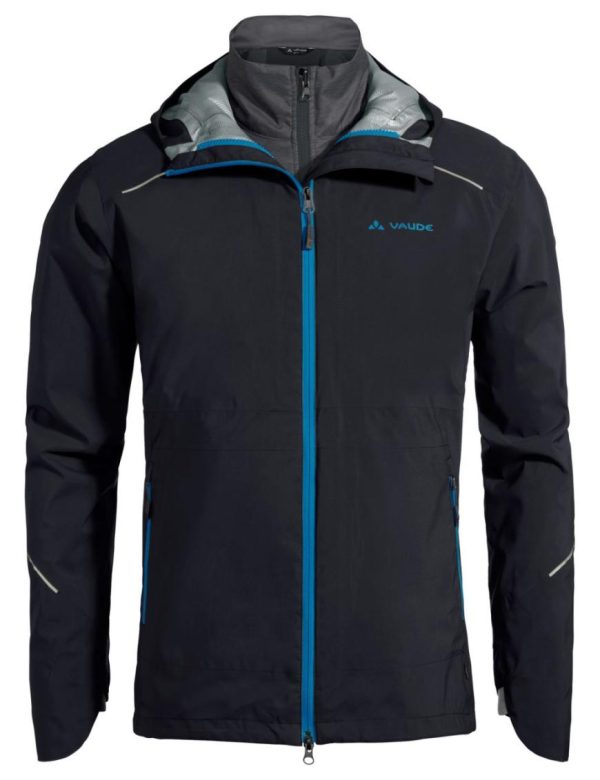Mit der Yaras 3in1 Jacket sind Radler auf Radreisen und im Winter gegen schlechtes Wetter bestens gerüstet! Die 2,5-lagige Ceplex Active-Membran hält Nässe zuverlässig draußen, wasserdichte Taschen sorgen zudem dafür, dass Karte, Smartphone und andere Wertsachen stets bestens geschützt und trocken bleiben. Die einstellbare Kapuze hält den Kopf auch bei anhaltend schlechtem Wetter trocken, das durchdachte Belüftungssystem sorgt zudem für ein optimales Trageklima. Doch auch die Innenjacke geizt nicht mit Funktion – sie ist im Brustbereich und an den Schultern mit einer Wattierung aus PrimaLoft® Black Insulation 100%Eco versehen, die an sensiblen Stellen für mehr Wärme an kalten Wintertagen sorgt. Zwei Reißverschlusstaschen und Stretch-Einlagen bieten viel Flexibilität in jeder Tragesituation, der Stehkragen verringert Zugluft und garantiert ein ausgezeichnetes Tragegefühl. Die Materialien werden der Umwelt zuliebe nach dem bluesign®-Standard hergestellt. In Kombination mit der Yaras Rain Pants wird das Regenoutfit komplett.Mit reflektierenden Elementen. Dieses Produkt ist mit Eco Finish umweltfreundlich wasserabweisend ohne Fluorcarbone (PFC) hergestellt. Das VAUDE Green Shape-Label steht für ein umweltfreundliches, funktionelles Produkt aus nachhaltigen Materialien. Entwickelt für Fahrradreise – moderat,Fahrradfahren im Alltag Weitere Einsatzbereiche Fahrradreise – Abenteuer,Wandern,Unterwegs im Alltag,Reisen