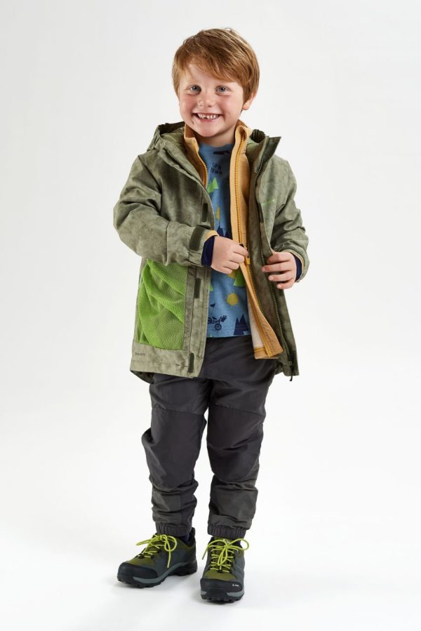 Wetterschutz für kleine Abenteurer und Sammler! Waldkinder spielen am liebsten draußen – und das bei jedem Wetter. Und sie sammeln gerne Schätze wie Steine, Äste, Zapfen, Muscheln usw., die irgendwo verstaut werden müssen. Deswegen hat unsere Regenjacke außen eine superpraktische „Schatztasche“ aus Netzmaterial. Dadurch können die Kinder sofort zeigen, was sie gesammelt haben und zugleich kann der gröbste Schmutz bereits abfallen (was die Waschmaschine freut). Der Schnitt der wasserdichten Kinderjacke ist hinten etwas länger, damit das Gesäß beim Sitzen besser geschützt ist. Abgerundet wird die Regenjacke durch viele Verstellmöglichkeiten und reflektierende Elemente. Die funktionelle VAUDE Kinderbekleidung zeichnet sich durch hochwertige Materialien, kindgerechte Passformen und Farben sowie eine umweltfreundliche Herstellung aus. Wir entwickeln durchdachte Kinder-Outdoorbekleidung, die sich durch ihre Langlebigkeit auch von Kind zu Kind weitervererben lässt. Dieses Produkt ist mit Eco Finish umweltfreundlich wasserabweisend ohne Fluorcarbone (PFC) hergestellt. Das VAUDE Green Shape-Label steht für ein umweltfreundliches, funktionelles Produkt aus nachhaltigen Materialien. Entwickelt für Kinder – Draußen aktiv