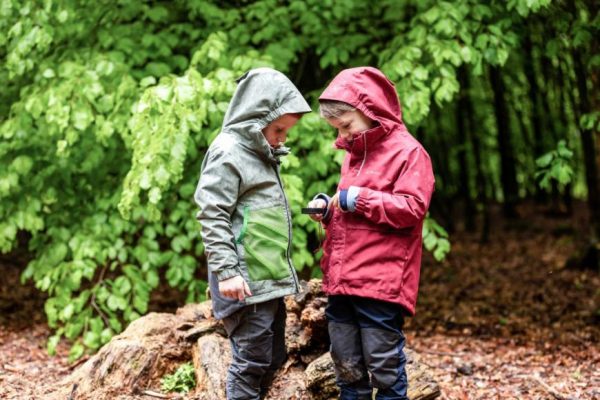 Robuste Kinder Regenjacke mit großer, außenliegender Tasche für Waldkindergarten und Freizeit